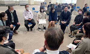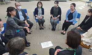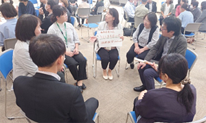 この他にも、「みんなでこんなことで話し合ってみたい・企画してみたい・やってみたい」ということを思いついた人に画用紙に書いていただいて、「この指止まれ!」方式で集まってのグループワークも行われ、みなさん、真剣に話し合われていました。